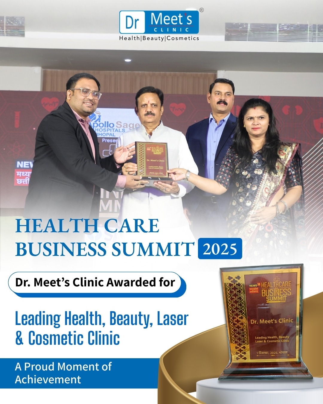 Healthcare Business Summit Award for being a leading name in Health, Beauty, Laser & Cosmetic Clinic.